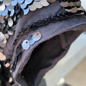 Preowned. Some wear ln the sleeves with missing sequins (as photographed). Hard to notice and no issue if worn with blazer. Priced to sell.
