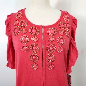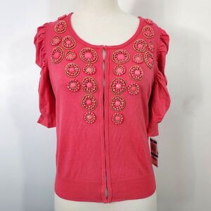 INC International Concepts Womens Shrug Cardigan Size XL Beaded Coral Ruched NWT