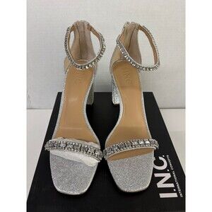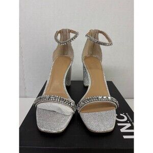 Brand new INC International Concepts Women's Silver Glitter Lana Sandal Block Heels Sz 9M