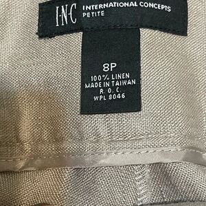 INC International Concepts Womens Size 8P 100% Linen Pants Light grey