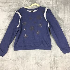 INC International Concepts Women’s Size Large Blue Ruffled Star Sweatshirt NWT