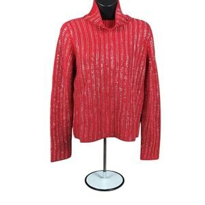 INC International Concepts Women’s Small Red Metallic Turtleneck Sweater