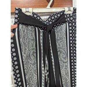 INC International Concepts Women's Black & White Abstract Pattern Tie -Belt Waist Jersey Knit Pants Size S