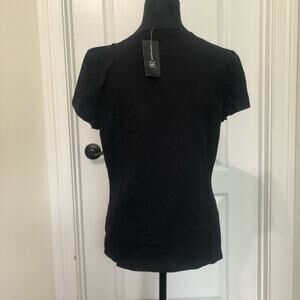 INC International Concepts Women'sT-Shirt Beaded V-Neck Short Sleeve Black Large