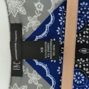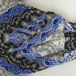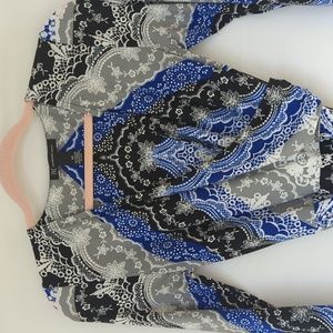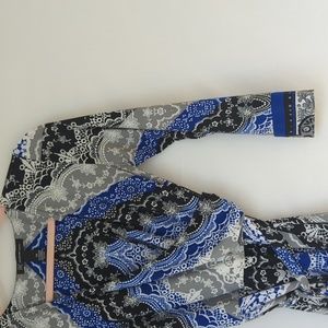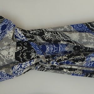 INC | Blue, white, gray & black Mock Wrap Dress with tie front. Beautiful blend of colors in a floral design. Versatile - looks great with heels or boots, perfect for Work or Night Out!
