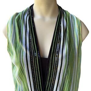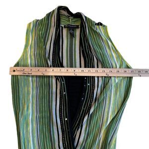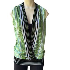 INC International Concepts Wrap Top Shirt Green Black Stripe Sequin Women's S