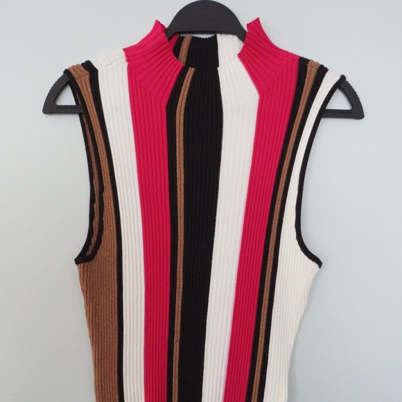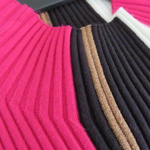 A classic strip in cream, black hot pink (showing up red) and a dark metallic gold.