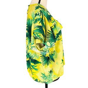 INC International Concepts XX-Large Top Leaf Print Ruffled Flutter Sleeves Multi