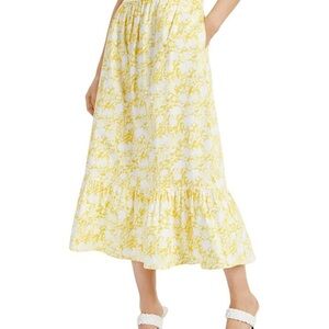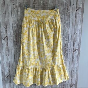 INC International Concepts Yellow Floral Midi Tiered Skirt Petite Small