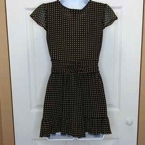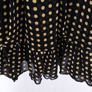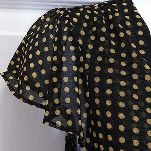 EUC lovely feminine black nylon blouse with yellow polka dots. Approx. measurements: