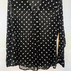 INC International Concepts black and white polka dot sheer L/S blouse 1X