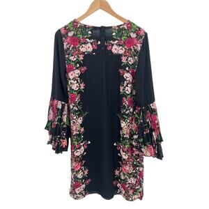 INC International Concepts black floral 3/4 bell sleeve shift dress