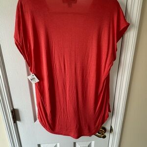 This relaxed blouse from INC International Concepts features a vibrant coral hue and a comfortable, flowy fit. The blouse is designed with a deep V-neckline and loose-fitting sleeves, making it perfect for warm weather. Its lightweight fabric ensures a soft and easy drape, ideal for casual outings.