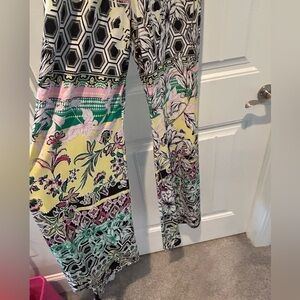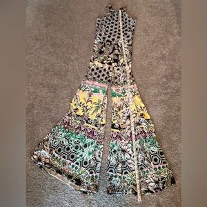 Such a fun outfit. Only worn about 5 times. High neck, that grips around the neck with a built in necklace. Necklace never clasped. Very flowy material. Smoke free home. See pictures for measurements.