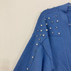INC International Concepts size XL Blue Beaded Stretch Knit Button Cardigan