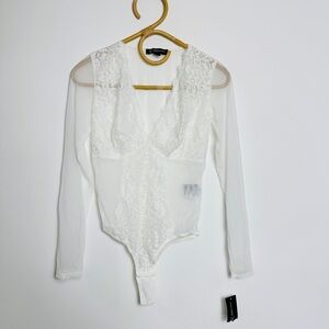 INC International Concepts white long sleeve lace mesh bodysuit