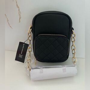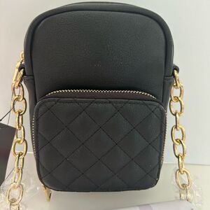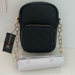 INC International Concepts Black Quilted Leather Crossbody Bag NWT