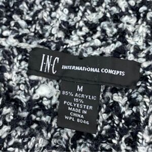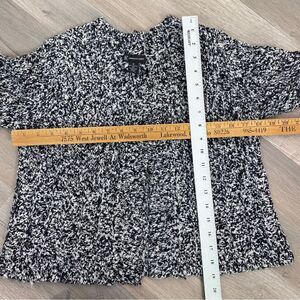 INC International Concepts Boucle Knit Crop Cardigan Sweater Black White Medium