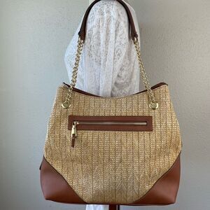 INC International Concepts Faux Woven Straw and Leather Trim Purse EUC