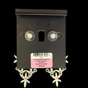 Elegant silver-tone mixed metal chandelier earrings with intricate design. Perfect for adding sparkle to any outfit.