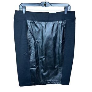 INC International Concepts Skirt Black Faux Leather Front Stretch Slip On Large
