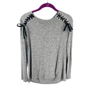 INC International Concepts lightweight sweater grey gray lace shoulders large