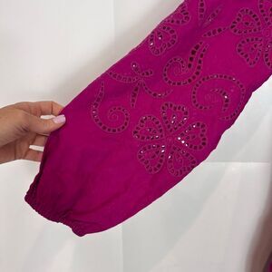 Macys solid, v-neck, balloon sleeve floral eyelet embroidered long sleeves