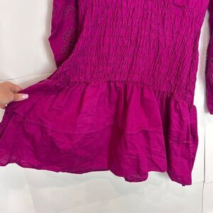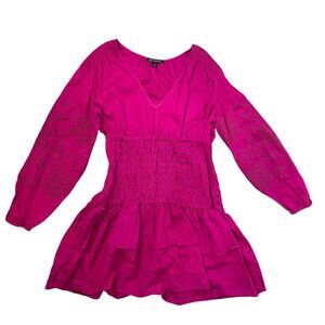 INC International V-Neck Smocked Dress Pink eyelet Puff Sleeve Ruffle Tiered