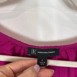INC International Concepts Womens V-Neck Smocked Dress Pink eyelet Puff Sleeve Ruffle Tiered Styl