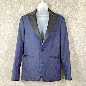Pre loved INC International Women's Jacquard 2 Button Tuxedo Blue Black Jacket Size Small.