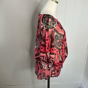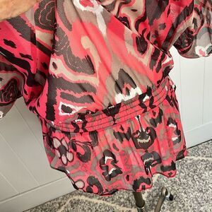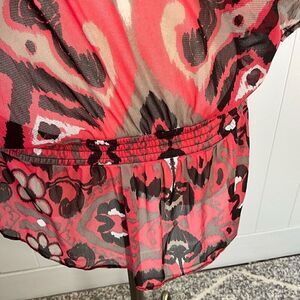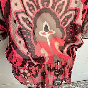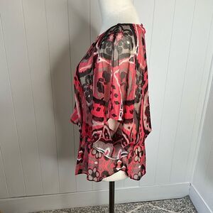 INC International Womens Medium Sheer Blouse Orange Brown Elastic Waist