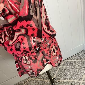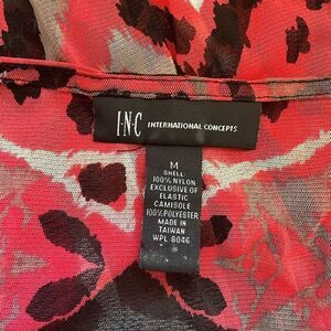 INC International Women Medium Sheer Blouse Camisole Orange Brown Elastic Waist