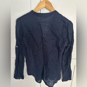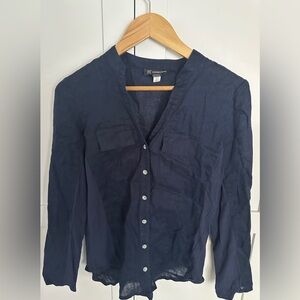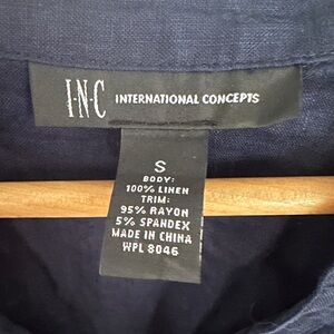 INC International concepts navy blue button up blouse shirt size small