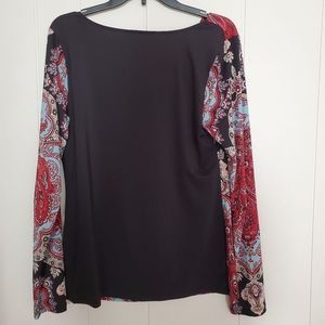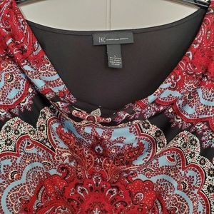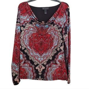 INC International Concepts Blouse Paisley Print Red Black Shirt Size Large