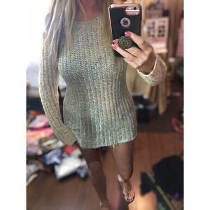 INC International Concepts Crochet Rainbow Foil Tunic Sweater Size Large Crew Neck