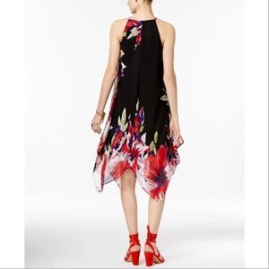 INC International Concepts Fantasia Floral Chiffon Handkerchief Hem Halter Dress