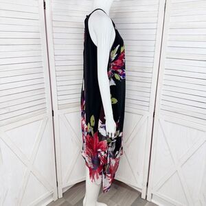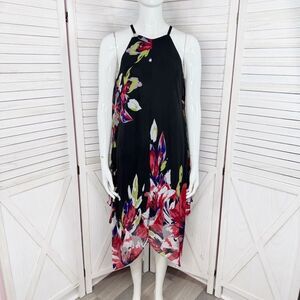 INC International Concepts Floral Handkerchief Hem Midi Halter Dress Black 6