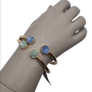 INC International Concepts Gold-Tone 2 Piece Set Stone Cuff Bracelets Blue Green