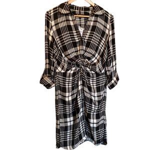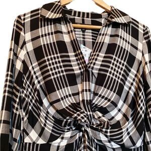INC International Concepts Plaid Twist-front Button Down Shirt Dress Size Medium