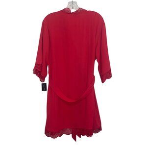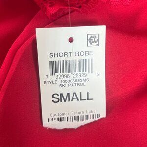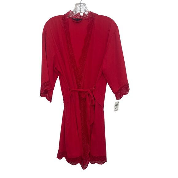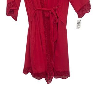 INC Intimates Short Robe Lace Trim Belt Womans Small Red New Sleepwear Silky