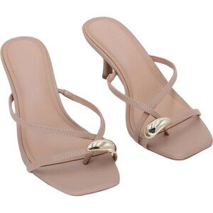 Chic square-toe heels with sleek straps and a glossy toe ornament accent.
