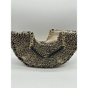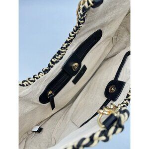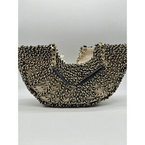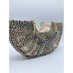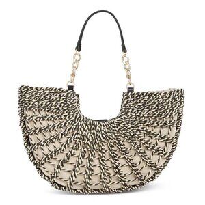 INC Ivah extra large chain woven straw tote - Black / Cream