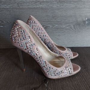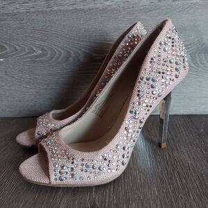 INC International Concepts Jema Sparkle Pumps Peep Toe Heels 5.5M Shoes. Condition is "Pre-owned