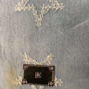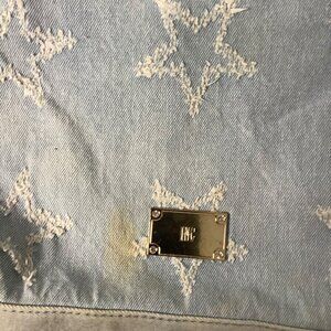 INC Kadi Twill Distressed Denim Light Blue Embellished Tote Satchel Bag