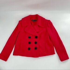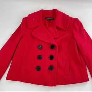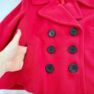 INC Knit Double Breasted Cropped Red Pea Coat. Y2K style and has a back pleat. Sleeve hem has a single stitch in it taking up about 1.5” can easily be let out for length. Cover photo is shown for different style inspo options