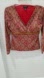 lined mesh long sleeve top with bead accent. crossed v neck. All lined except sleeves. Copper threads give subtle sparkle. Burgundy, rust, olive and tan