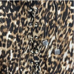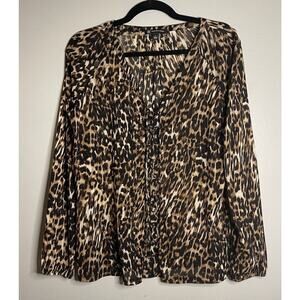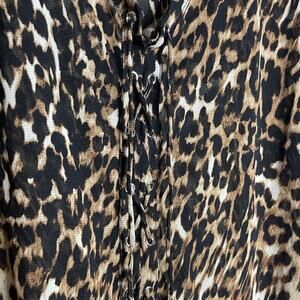 INC Large Blouse Sheer Animal Print Cheetah Leopard Lace-Up Elastic Cuff Metal
