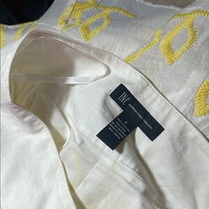 This lightweight skirt from INC International Concepts features a white color and a yellow embroidered poppy flowers on the fabric, offering a modern and stylish look. Its structured design and breathable cotton lining make it an ideal choice for warm days . The abstract pattern adds a unique touch, elevating your wardrobe with a contemporary flair.