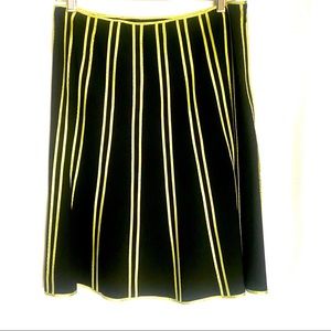 INC -Like new, worn once, black flared midi skirt with yellow ribbon piping.