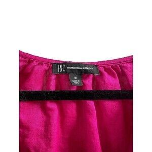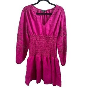 INC Linen Blend V-Neck Smocked Ruffle Tiered Mini Dress in Magenta Size M
